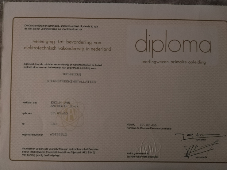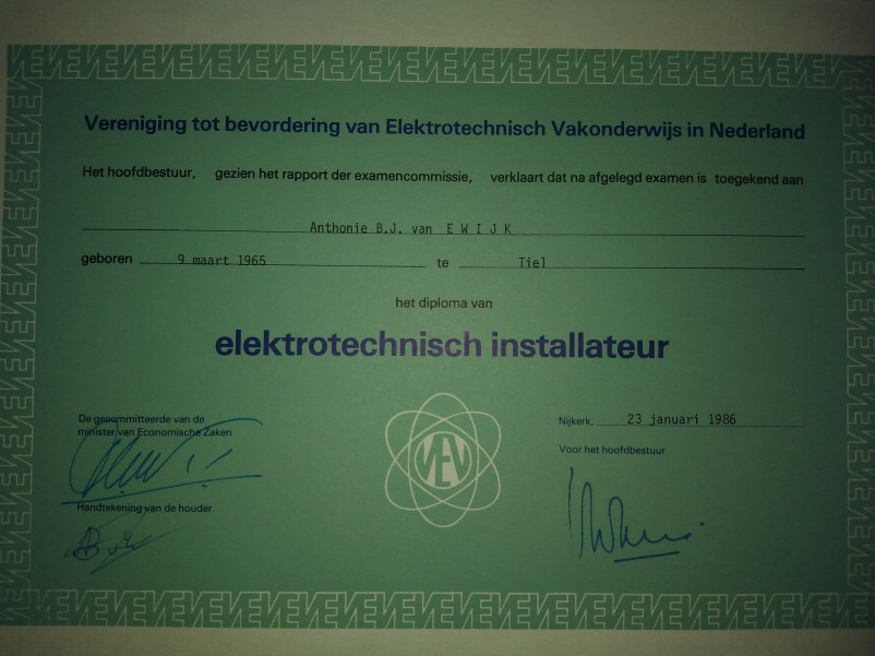 Ik ben een ondernemer met diploma's :Technicus Sterkstroominstallaties (T.S.I.) / Elektrotechnisch Installateur (E.I.)